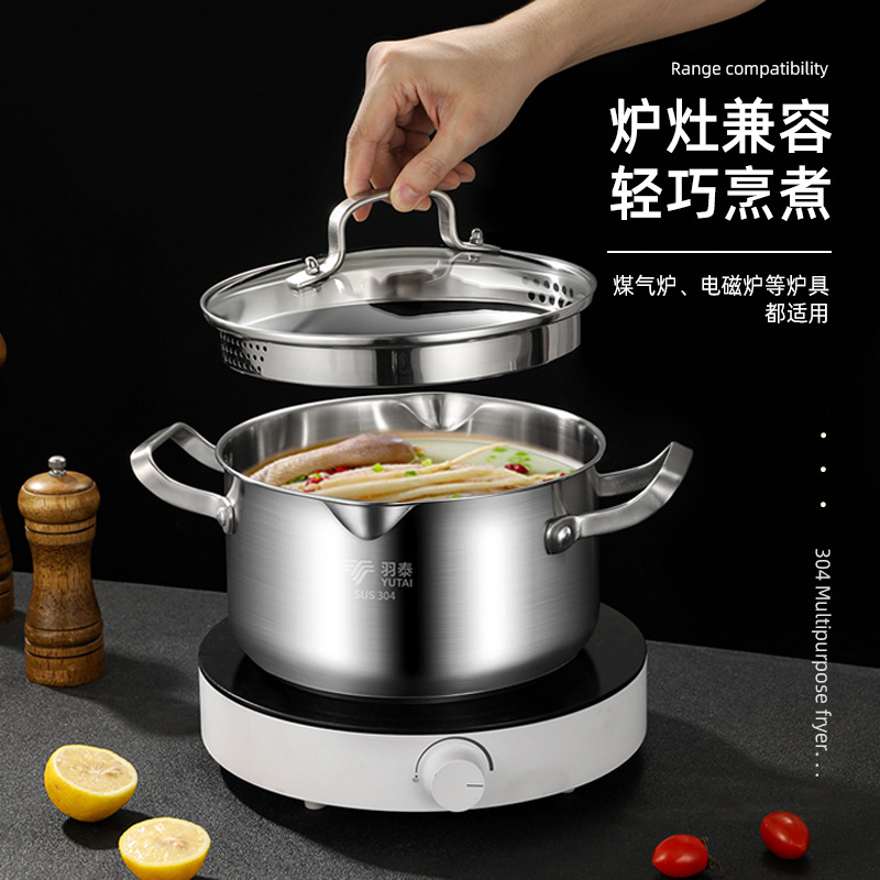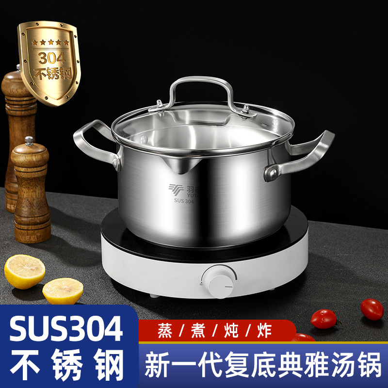 304ステンレススープ鍋卸売りプレゼントカップラーメン鍋電磁ストーブ共通の厚い家庭用二耳鍋