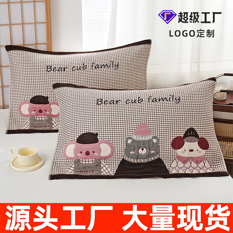 綿三層ガーゼ枕カバー、おしゃれでシンプルな綿素材、卸売、柔らかく通気性のあるカップル用日常枕カバー、純綿で快適