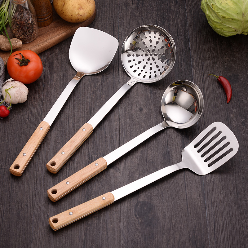 ステンレスの鍋のシャベルのスプーンの8つのセットの家庭用ホテルの炒め物のシャベルの台所用品の贈り物のメーカーは卸売りします。