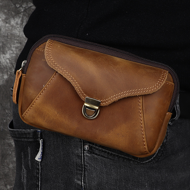狂馬皮頭層牛革男性腰包真皮ベルトズボン腰掛け携帯バッグ6.1-6.7インチロット