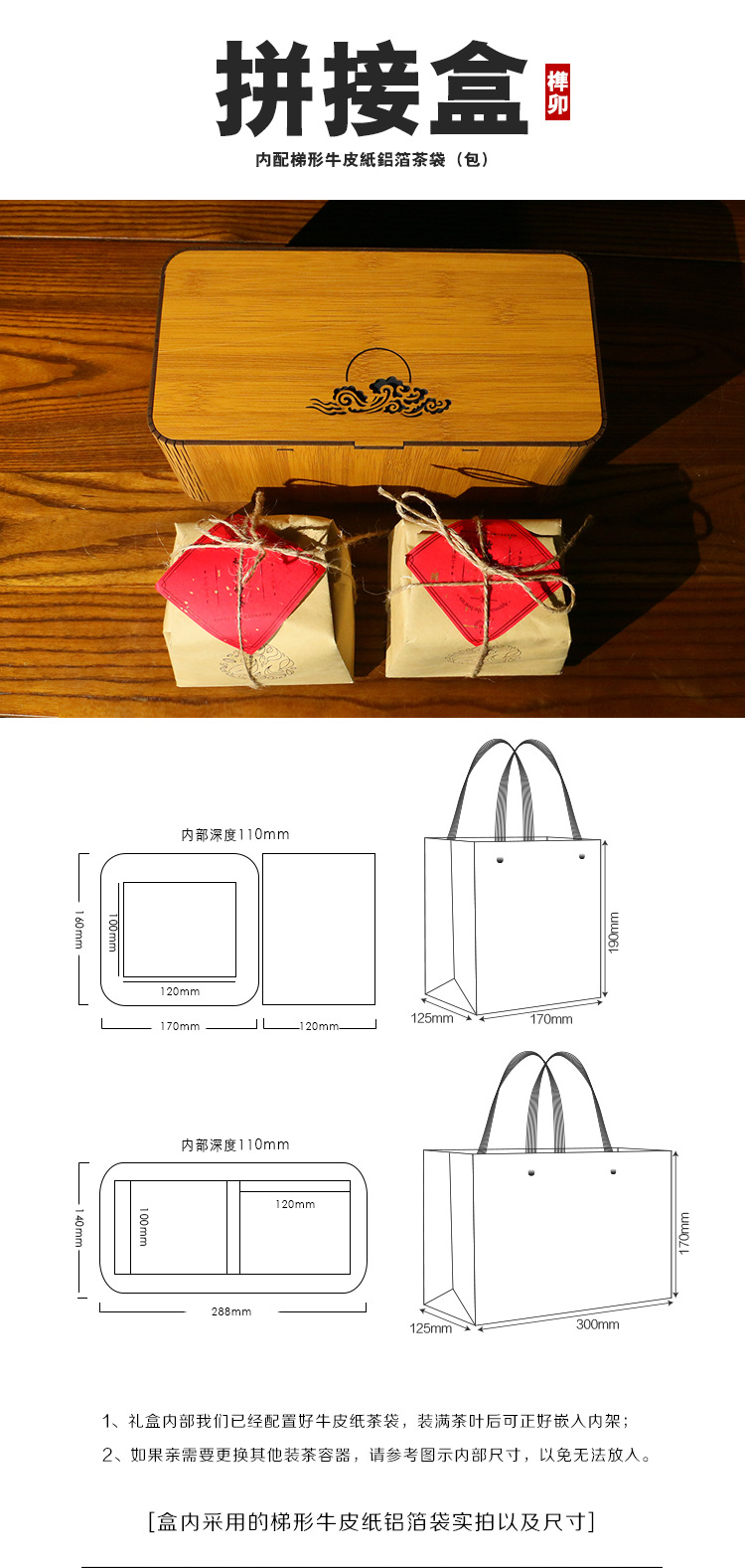 仿竹木盒高档长方形一两二两半斤书本式古树红茶岩茶肉桂大红袍普洱袋泡摆泡礼品盒空盒