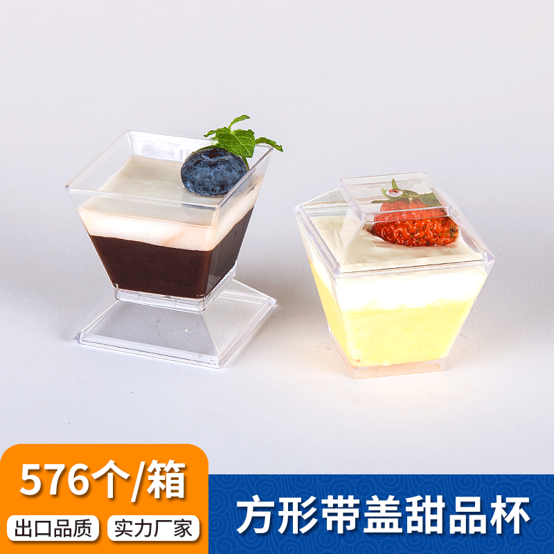 卸売60ml角型蓋付きデザートカップヨーグルトカップゼリーカップ使い捨て透明アイスクリームムースカップ
