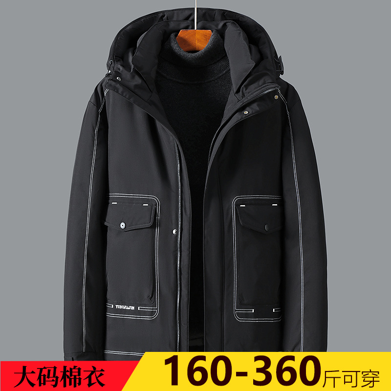 冬の新作、特大サイズ、流行の太った体型向け、中丈のメンズ綿入れジャケット、300斤まで対応、2481