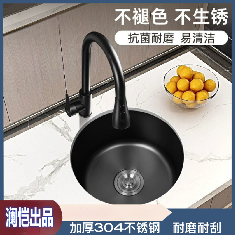 黑色纳圆形水槽小单槽201不锈钢吧台水槽阳台厨房30