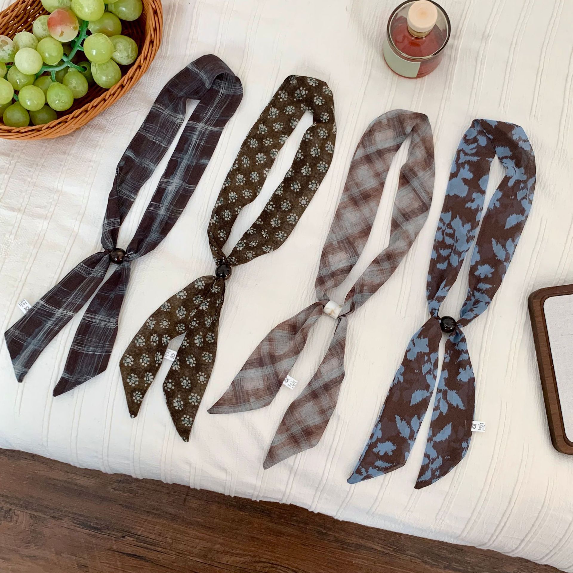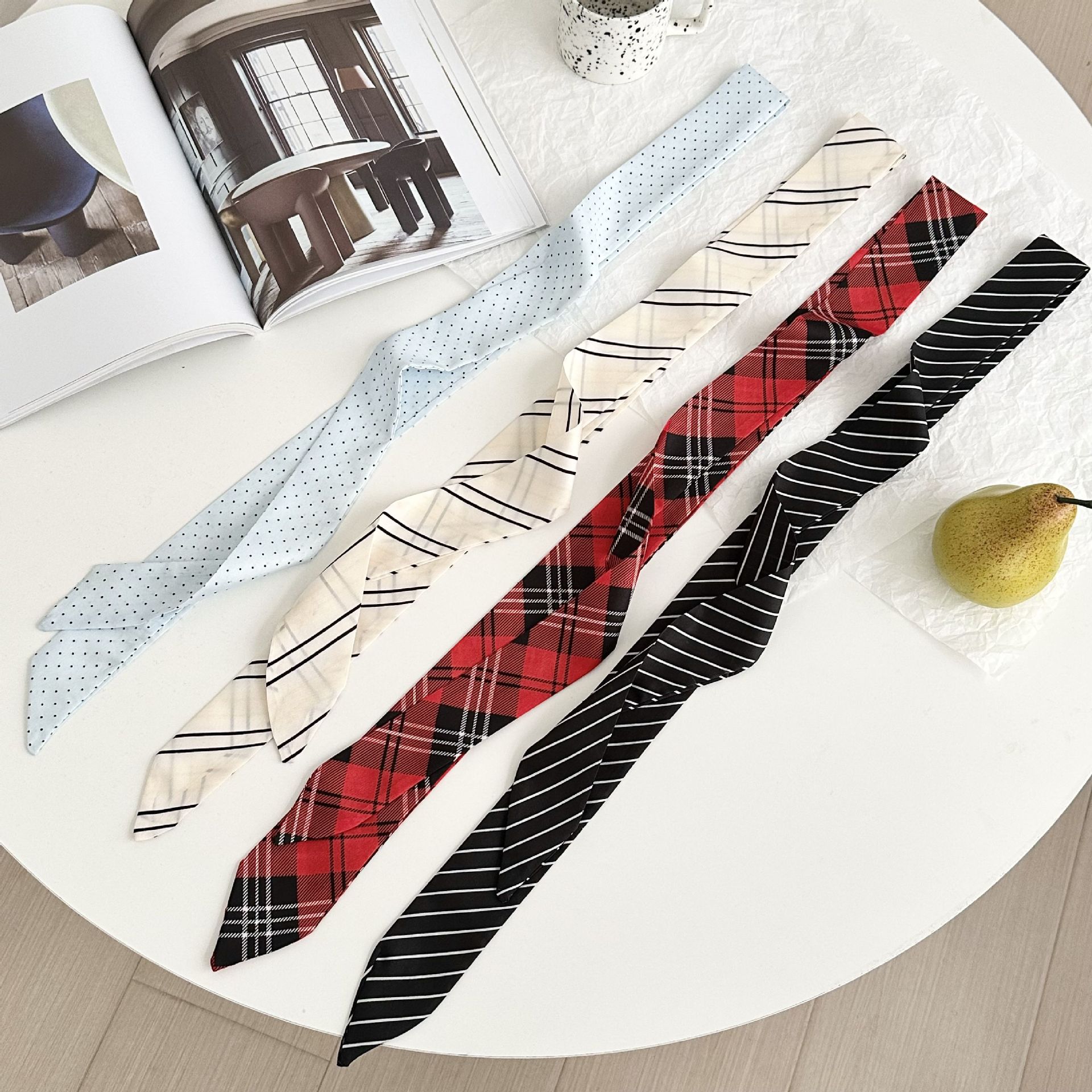 シルクタオル高颜値気質波点襟タオル韓系蝶結紮ヘアバンド細い長条リボンリボンリボンリボンリボンリボンリボンリボン