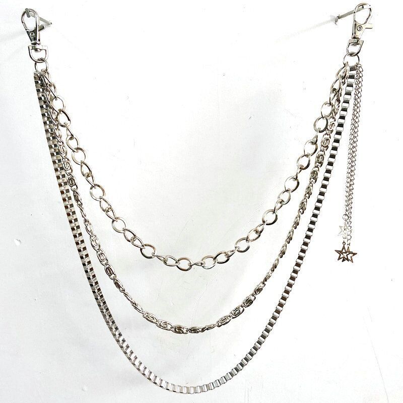 ins ヒップホップ個性多用途 2 色ウエストシルクスカーフメタル二層チェーンセットジーンズアクセサリー