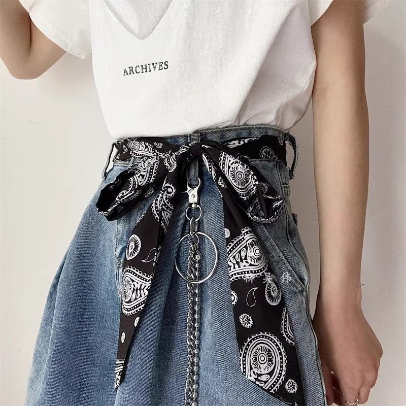 アメカチカチレトロhiphopパンツヒップヒップヒップスカーフbandana腰果花ins小方巾ズボンチェーン腰鎖