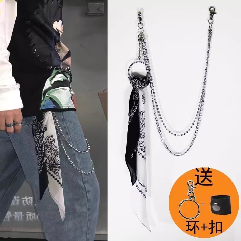 カシューナッツ柄の小さめスカーフヘアバンド、万能なヒップホップパンツチェーン、トレンディなストリートダンスアクセサリー、インダストリアルパンツチェーン、ウエストチェーン