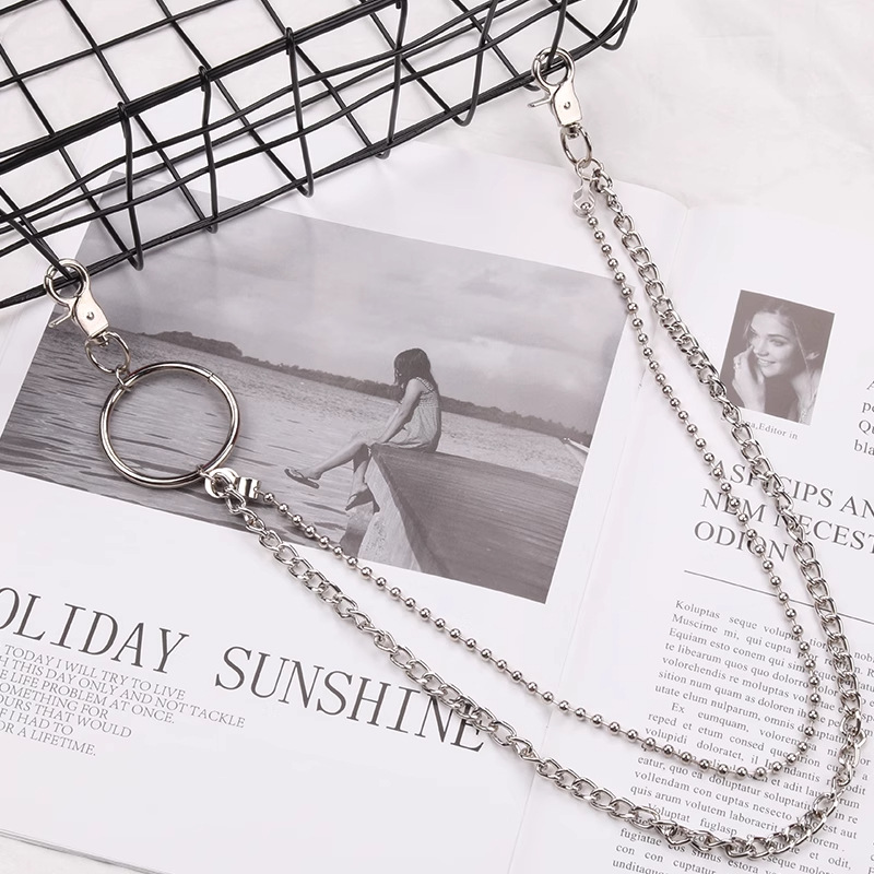 ins欧美摇滚圆圈圆珠链条嘻哈朋克金属环裤链腰链潮牛仔裤配饰潮