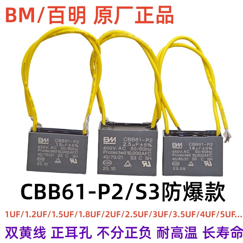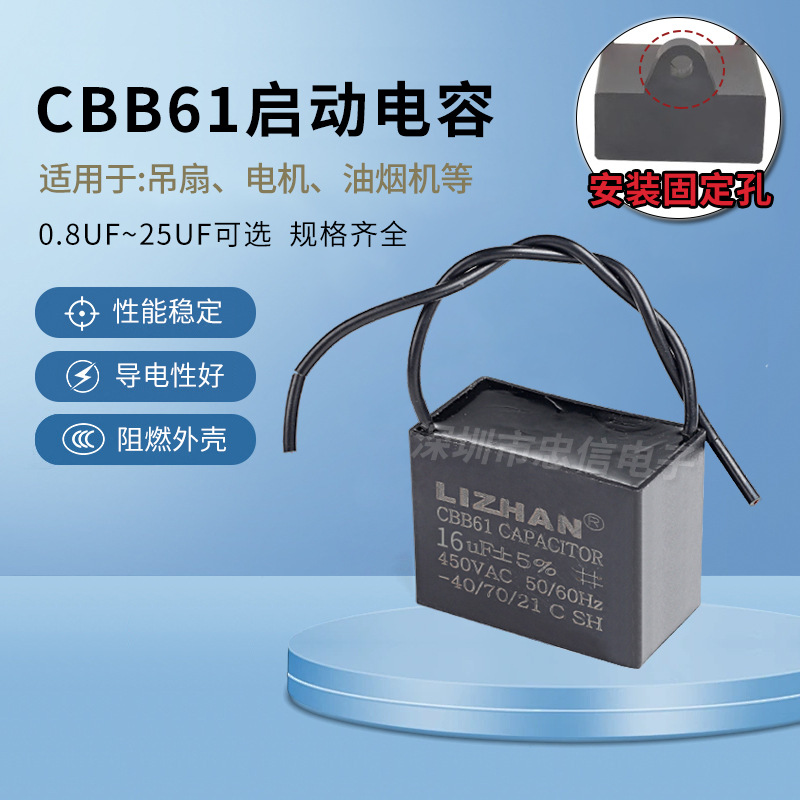 CBB61起动电容器适用于频率为50HZ交流电源供电的单相电动机的起动和运转,也可对电动机起调速作用的机器。是电风扇、抽油烟机、空调风机、面包机等重要的配套部件。