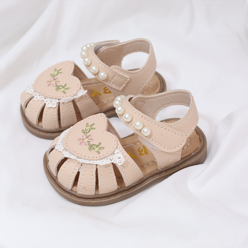 夏用子供サンダル、女の子用シューズ、ベビーシューズ、プリンセスシューズ、柔らかい靴底、滑り止め、つま先が覆われている