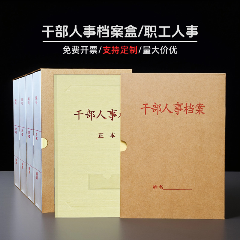 A4无酸纸硬纸板档案夹加印logo牛皮纸干部人事档案盒职工档案盒