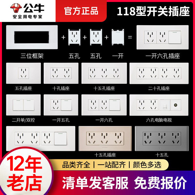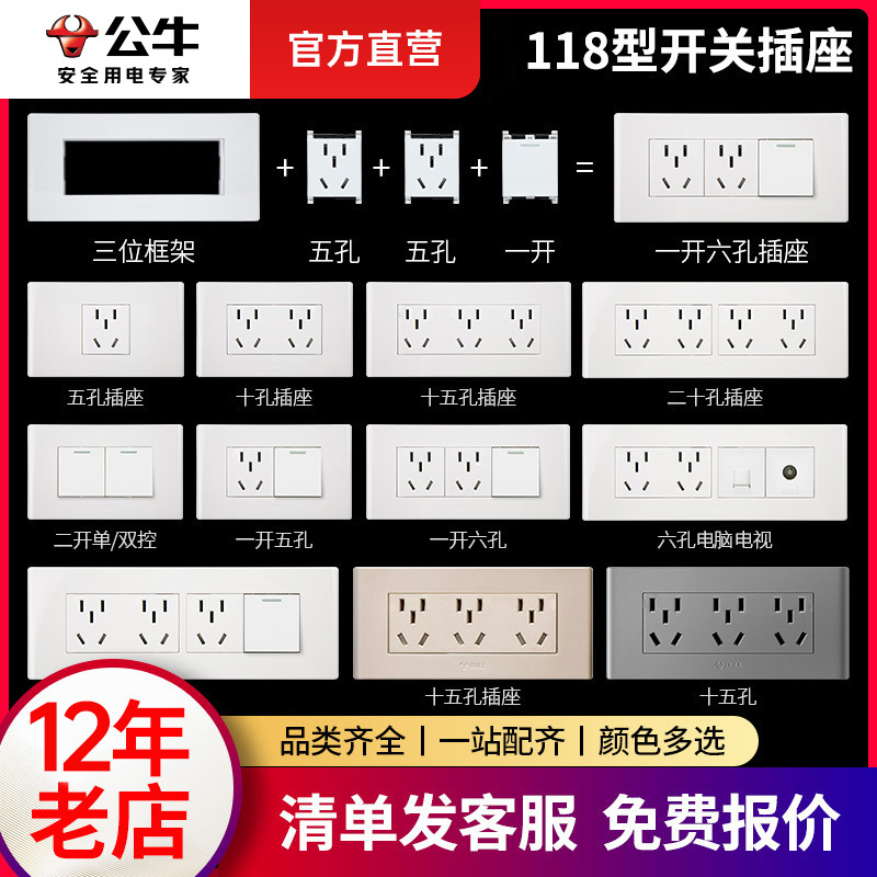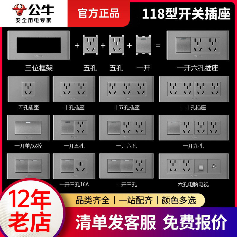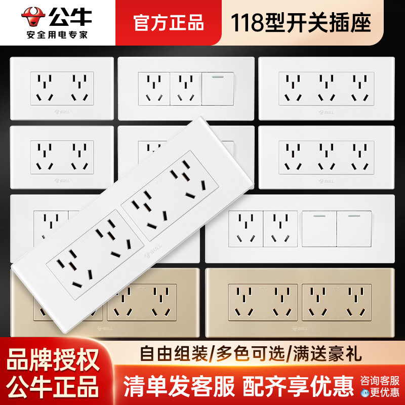 雄牛118型スイッチソケット家庭用キッチン壁6六20九穴9穴十二穴12穴パネル多孔