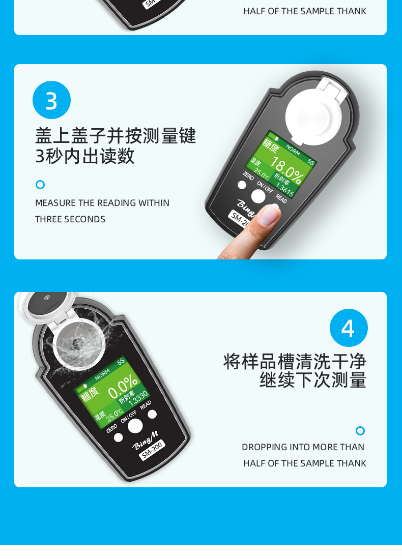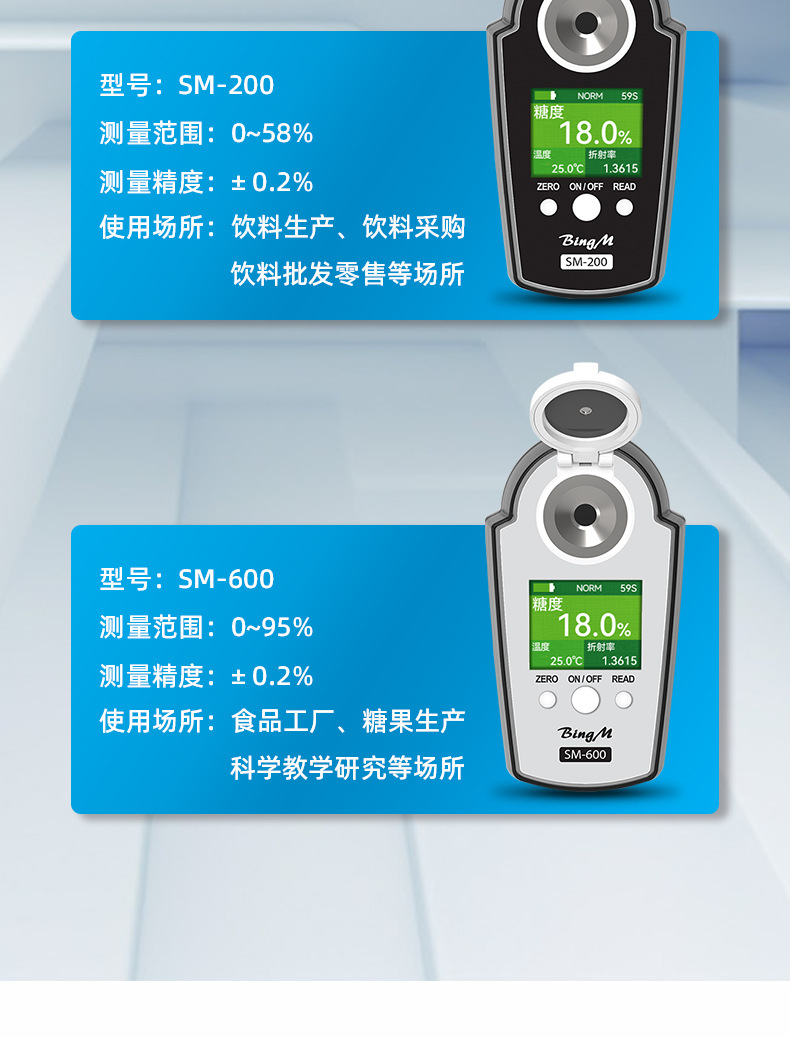 適用範囲 果物糖分測定、食品工場検査、果農栽培測定、屈折液体測定