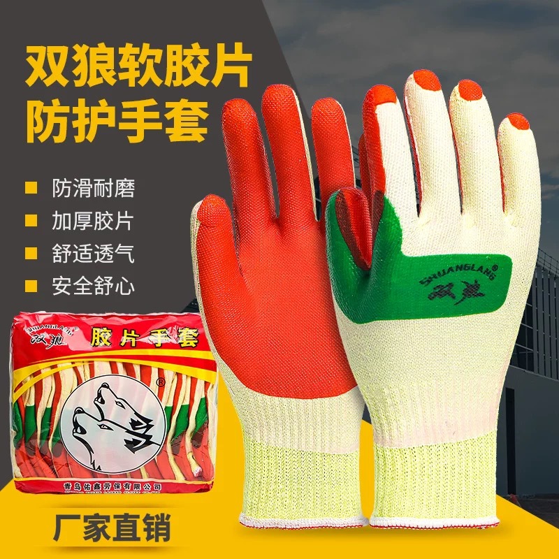 双狼ソフトフィルム手袋耐摩耗性滑り止め鉄筋工建設現場専用ガラス加工防割労働保護手袋