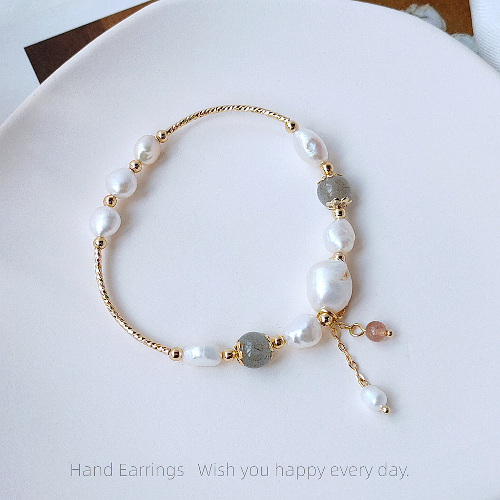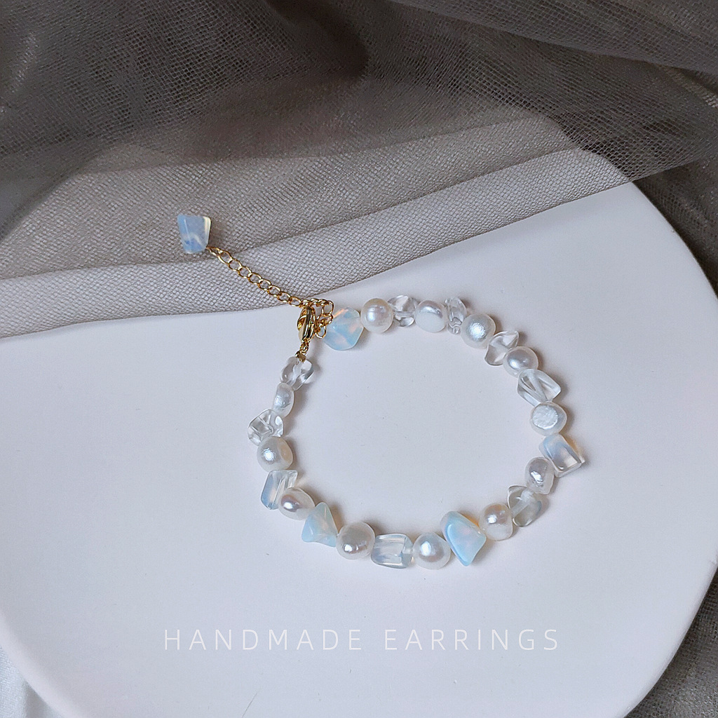 天然淡水珍珠+天然碎石草莓晶