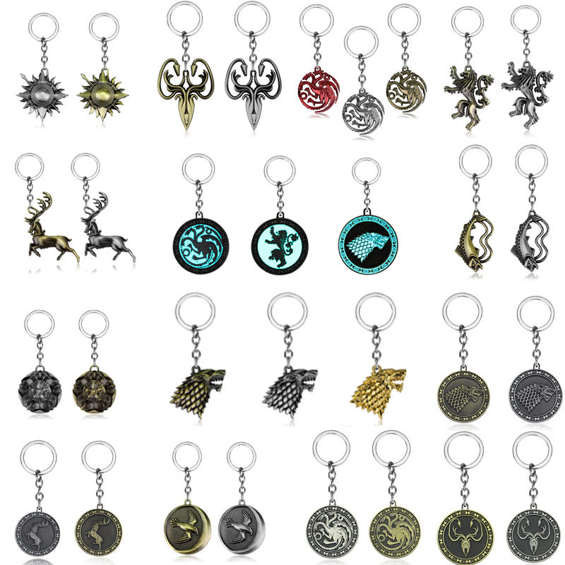 欧米の映画とテレビの周辺の9大家族の紋章の狼の頭の3頭の竜の鍵は合金の越境のペンダントの贈り物を掛けます。