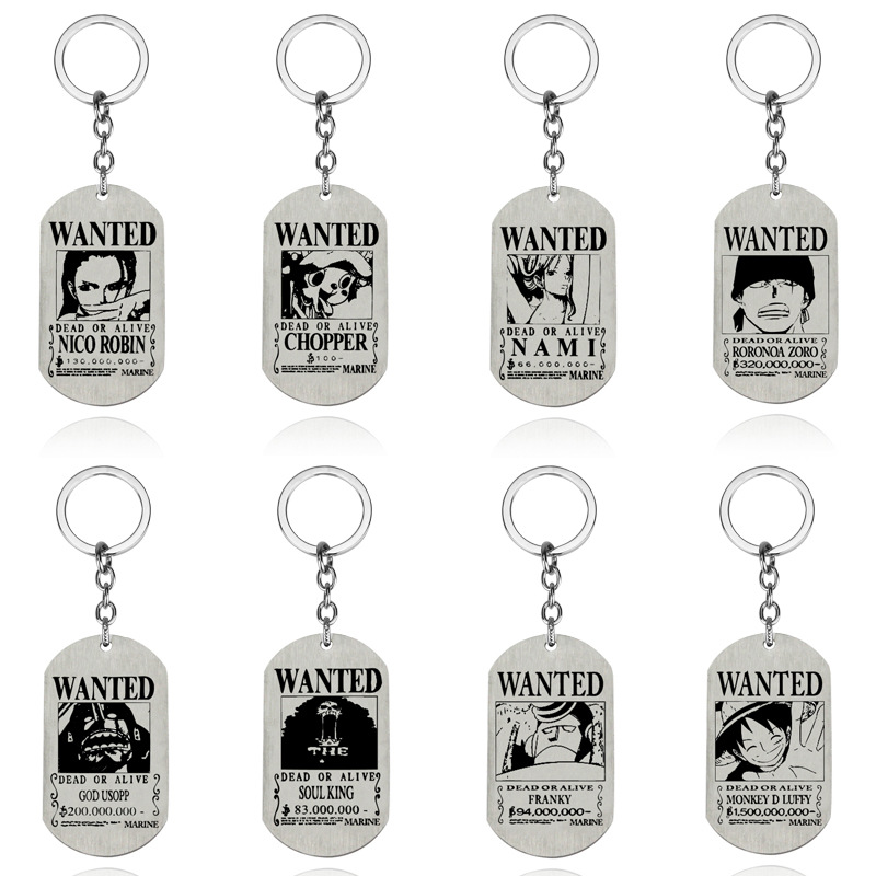 アニメ周辺商品 ワンピース キーホルダー ステンレス製 ブラッシュ仕上げ 軍章風 指名手配状 ルフィ ゾロ ペンダント