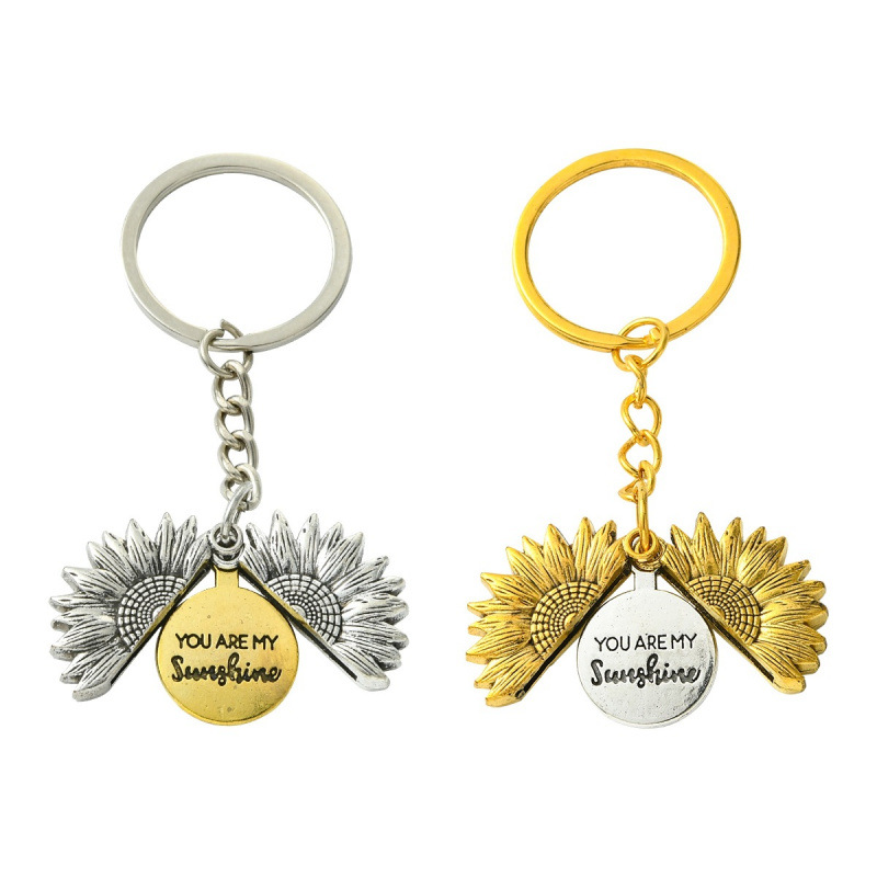 名称:向日葵花朵造型配饰可打开双面刻字合金钥匙扣三色可定制图案文字