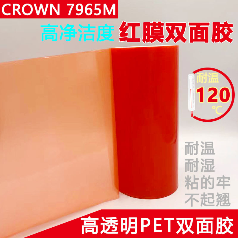 工場カスタマイズされたクラウンクラウン 7965M 赤フィルム PET 耐熱両面テープ 0.205 ミリメートル厚さの幅はダイカットすることができます