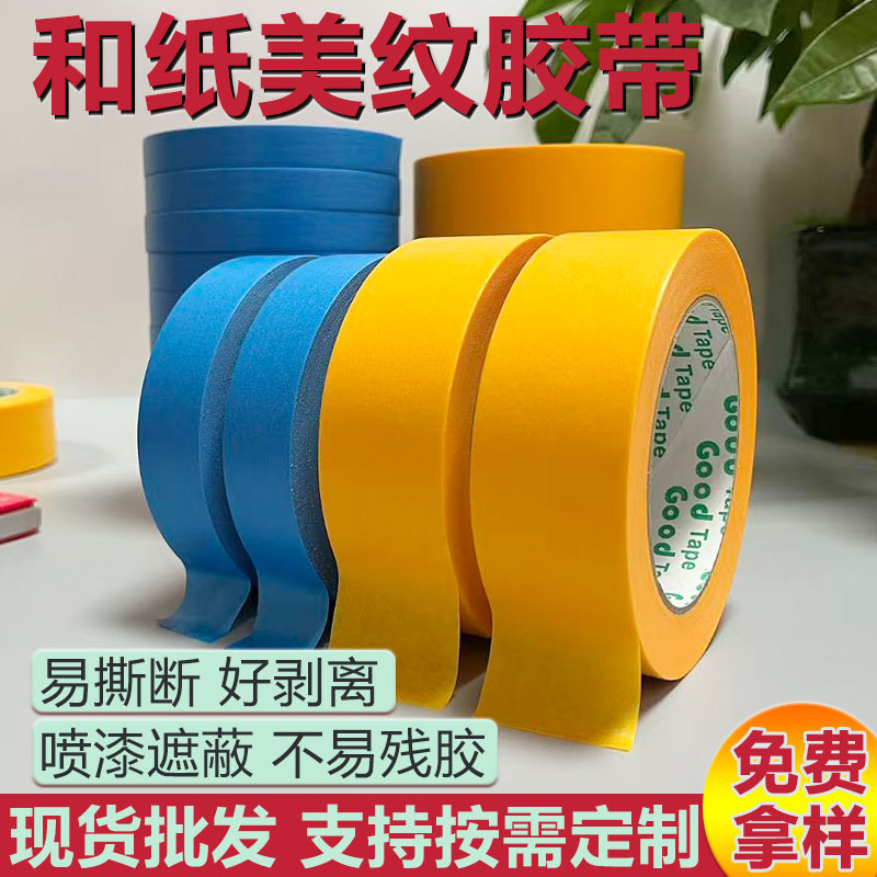 和紙美紋紙テープが強くて、車の塗装を引き裂きやすいです。高粘度で50メートルの現物をスプレーして卸売りします。