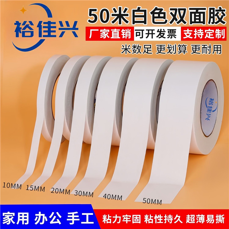 高粘度両面テープ綿紙事務用品学生文具白色強粘着熱溶工業用両面綿紙