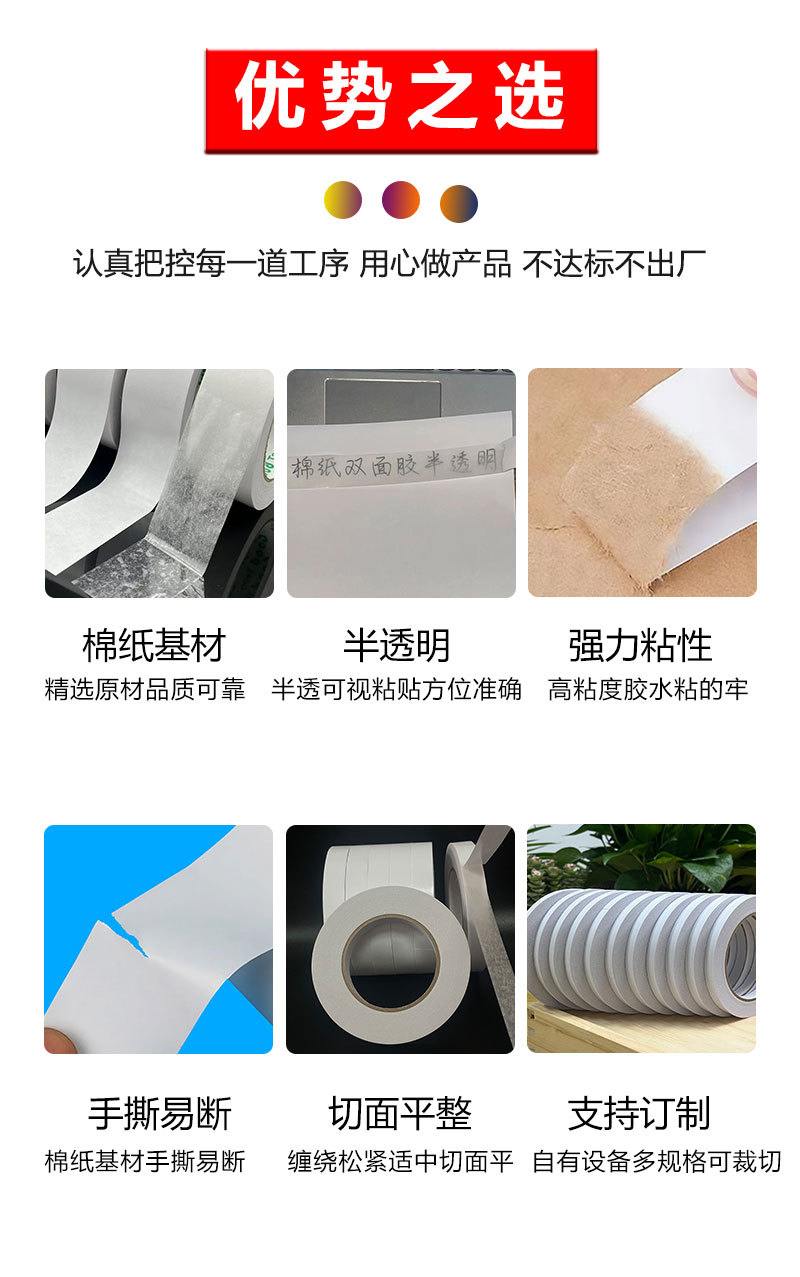 メーカー現物高粘強力両面テープ大量卸売り白色手裂き両面テープ綿紙両面テープ