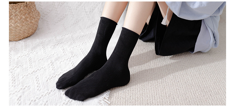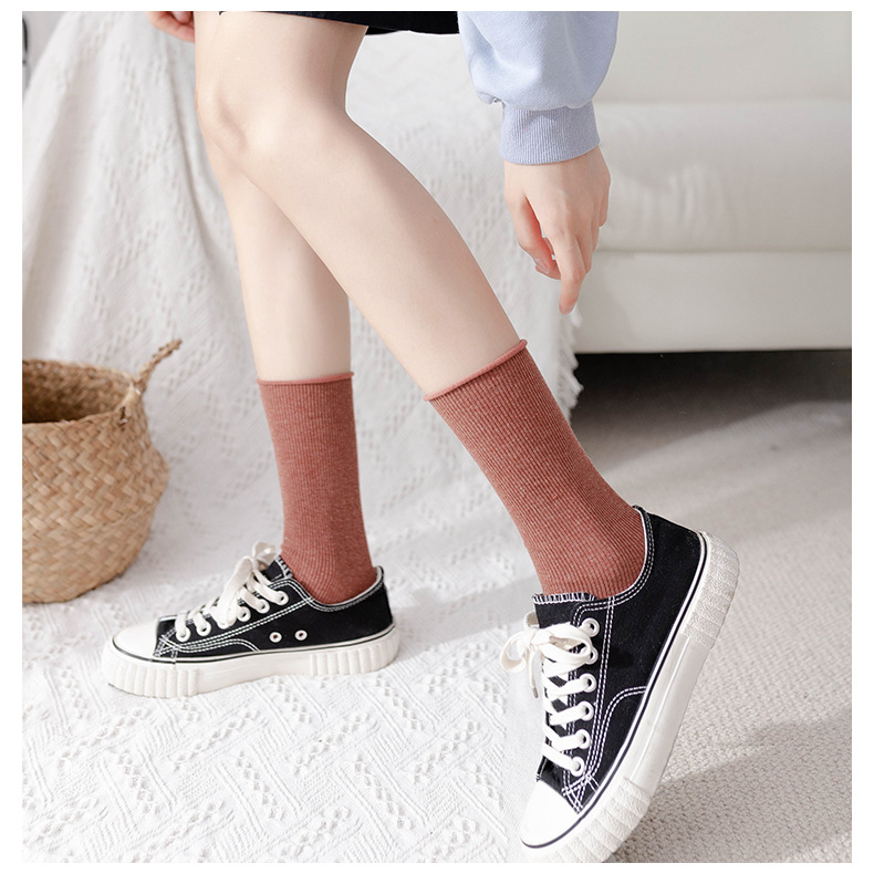 新しい女性の双針の靴下のカジュアルな純色の中筒の綿の靴下の秋冬の厚い金の保温の精密な綿の日本の女性の靴下