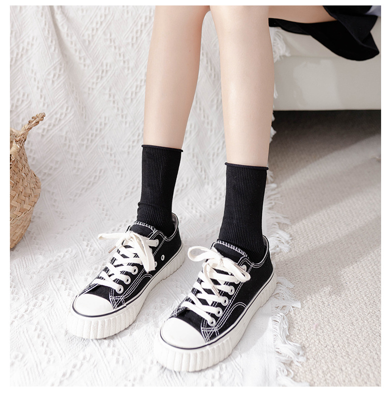 靴下の女性春夏の薄いベルベットの縁を巻いて靴下を積む日系復古純色jk潮靴下女性氷靴下