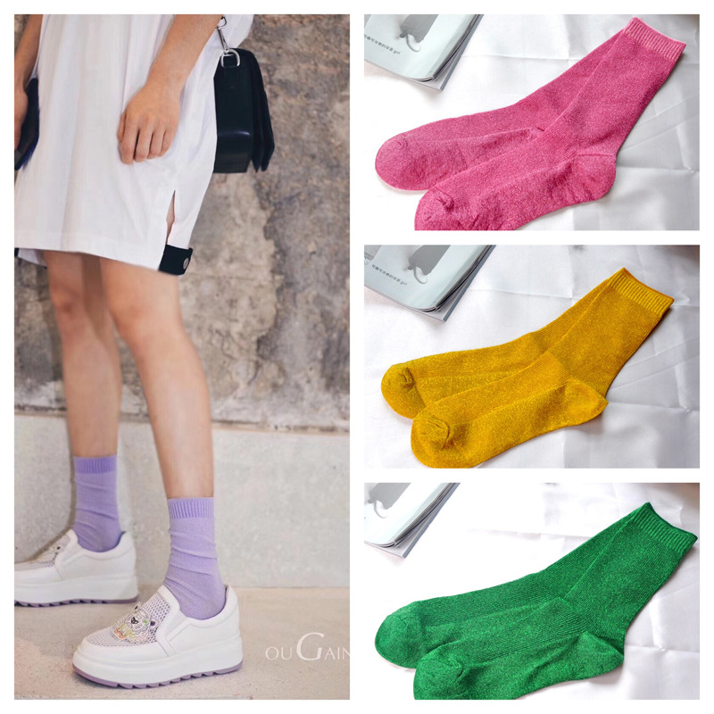 紫色の銀糸の安盈のキャンディー色の靴下の女性の薄いタイプの双針の新型の純色の金銀糸の靴下は国境を越えて専用に供えます。