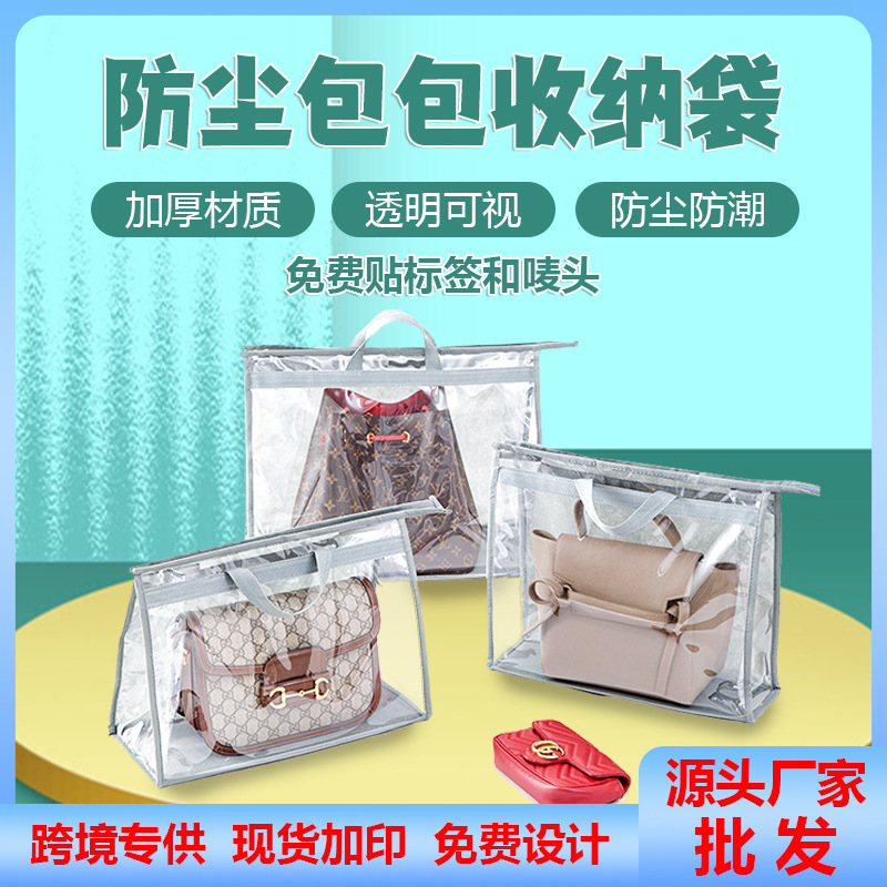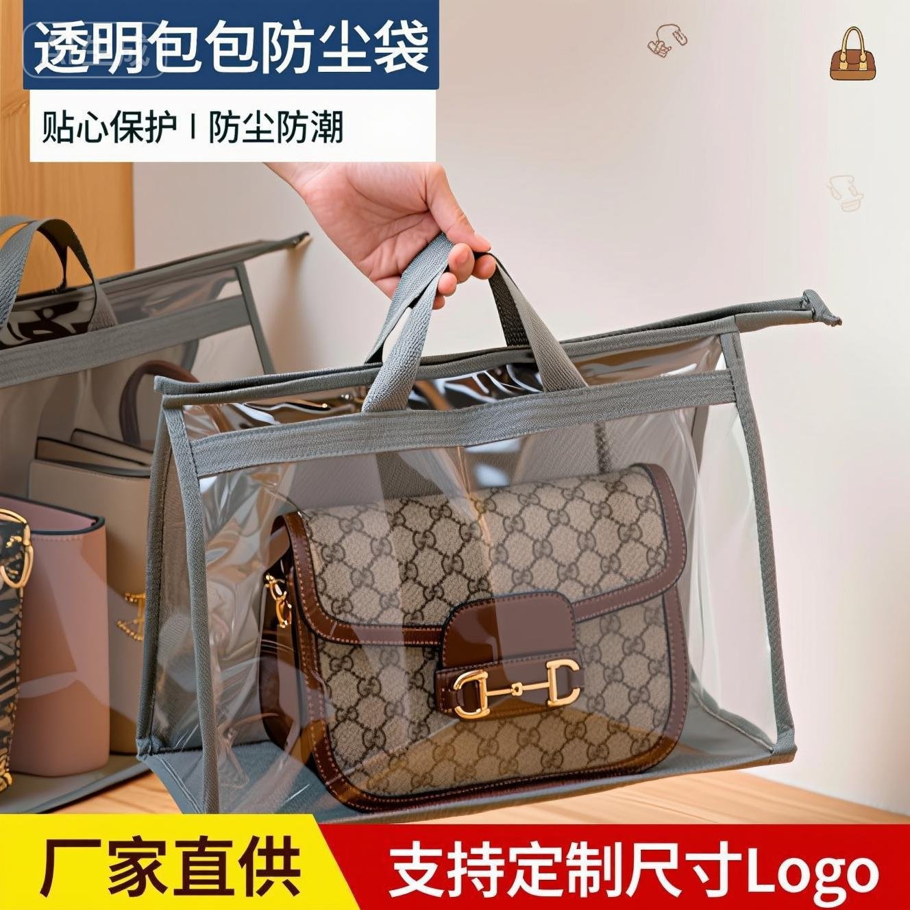 人気バッグ収納袋pvc手提げ袋透明大容量バッグ防塵袋たんす収納掛け袋神器