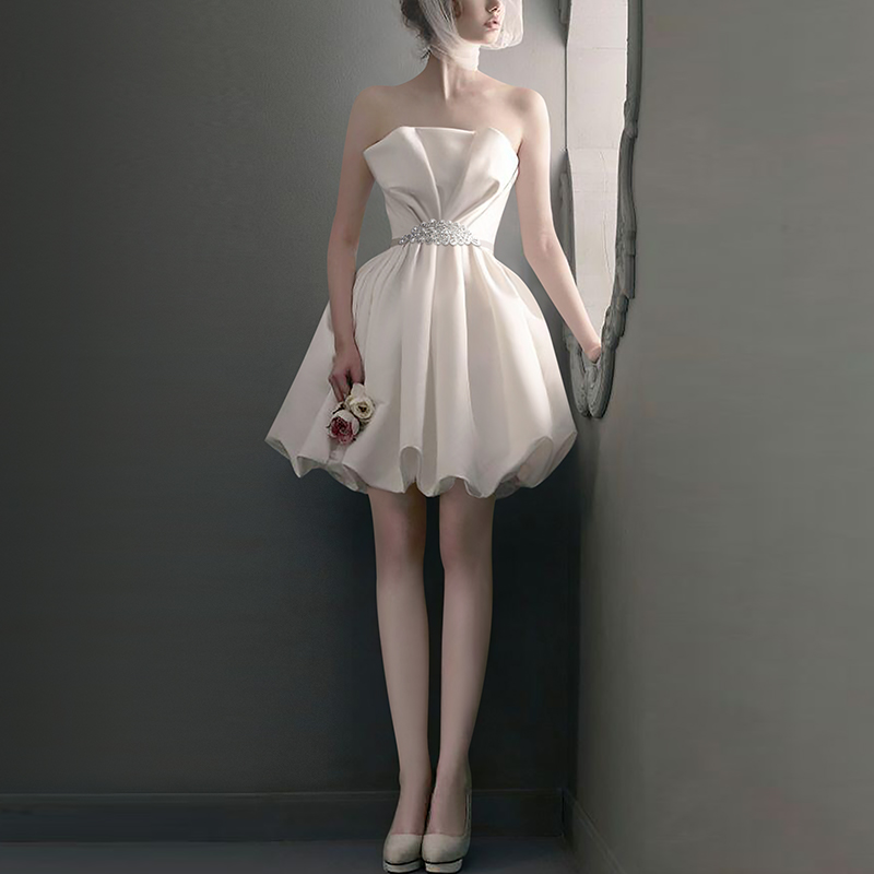 ウェディングドレス、イブニングドレス、女性用、2025年冬新作、上品な白、シンプルなフレンチサテン、軽やかなドレス、大きいサイズ、エレガント