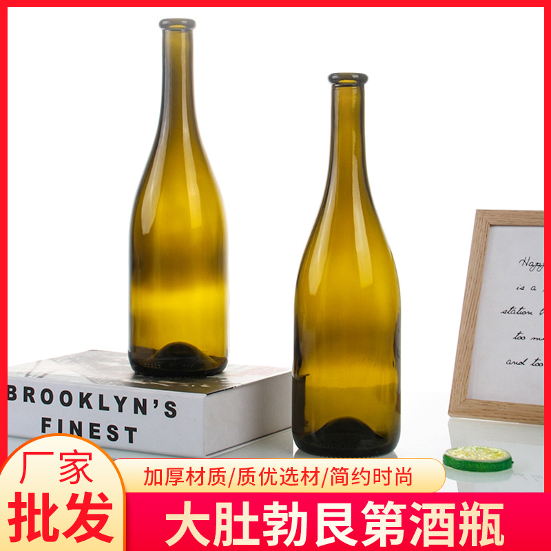 750ml大肚玻璃红酒瓶勃垦地葡萄酒瓶墨绿色自酿葡萄酒分装瓶批发