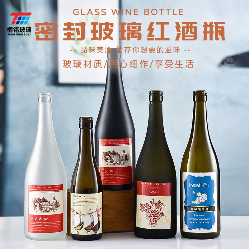批发红酒瓶750ml丝口勃垦第玻璃瓶红酒葡萄酒瓶密封避光香槟酒瓶