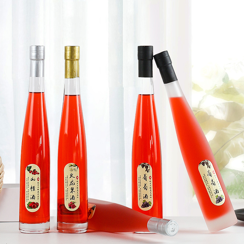 ファッションテーパードアイスボトル透明500ml女性の花のワインボトルのつや消しワインボトルのワインボトル