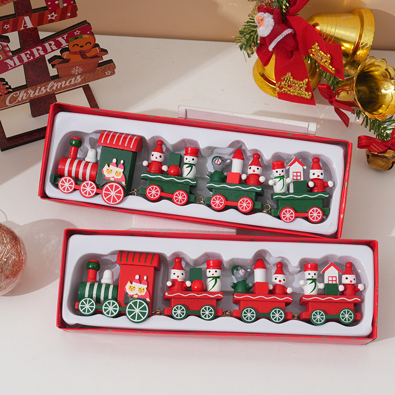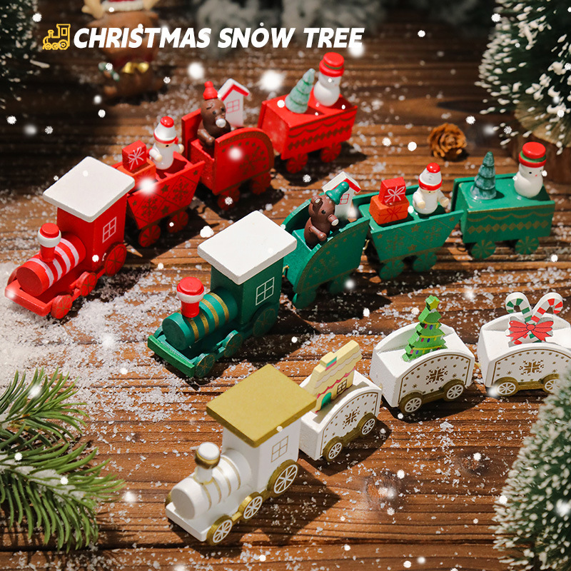 クロスボーダーのクリスマスの小さい列車の装飾品の子供の祝日のプレゼントのショーウインドーのデスクトップの置物の木製の小さい贈り物の卸売り
