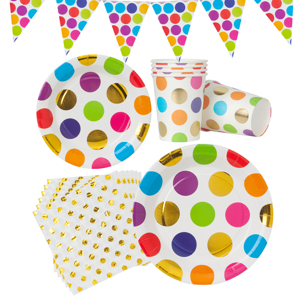 パーティー用品カラー箔押し大円点使い捨て箔押し食器テーマ箔押しパーティー食器装飾セット