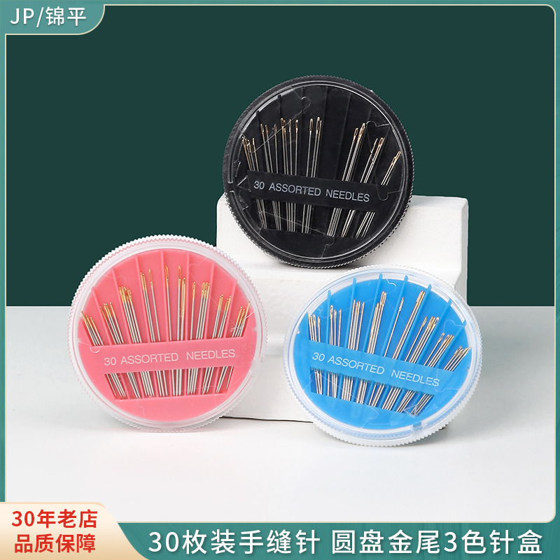 30枚金尾手缝黑针盒 圆盘金尾针盒针 缝衣针线套装配件家用针线盒