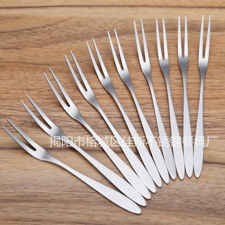 フルーツフォーク304ステンレス家庭用二歯フォーク厚い丸い尾スイカデザートフォークins風果物サイン卸売り