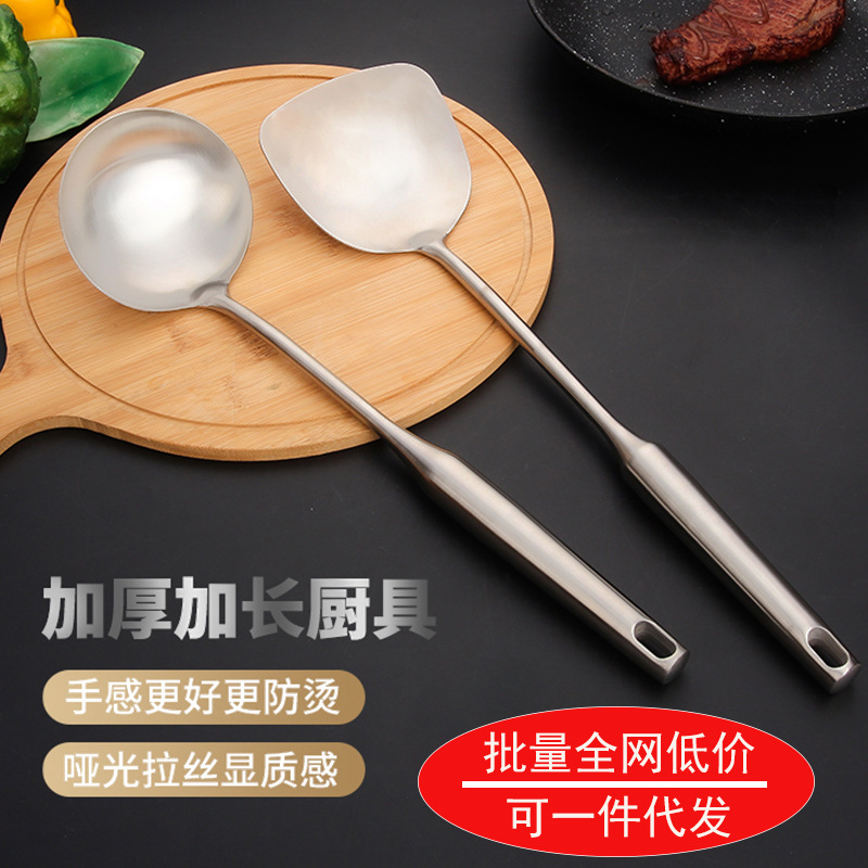 卸売りステンレス鍋シャベル家庭用台所炒めシャベルシャベルスプーン粥スプーン厚い円管調理器具セット