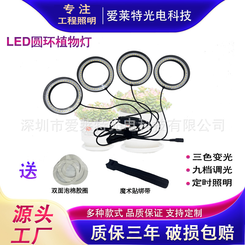 リング LED 植物成長ライトフラワースタンド緑の植物鉢植え多肉植物フルスペクトル天井植物補助光