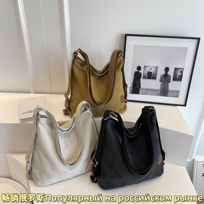 包包大容量女2025新款大容量双肩女包慵懒风单肩包帆布包大容量