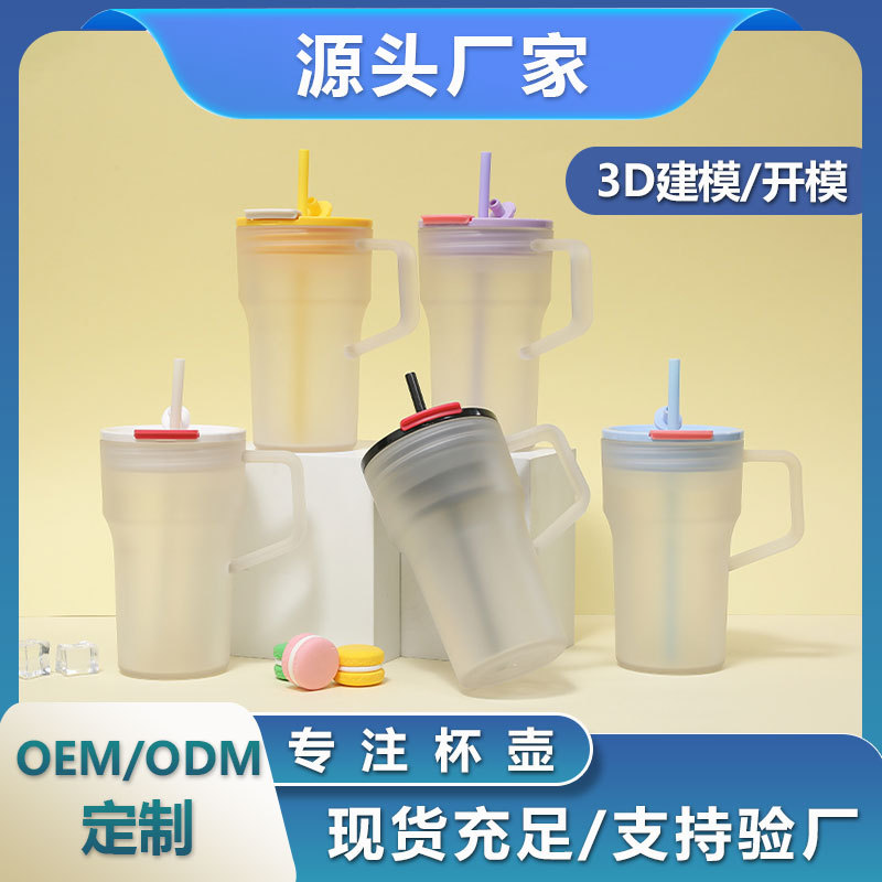 亚马逊新品学生便携冰霸杯 带手柄的磨砂塑料杯 高颜值户外水杯