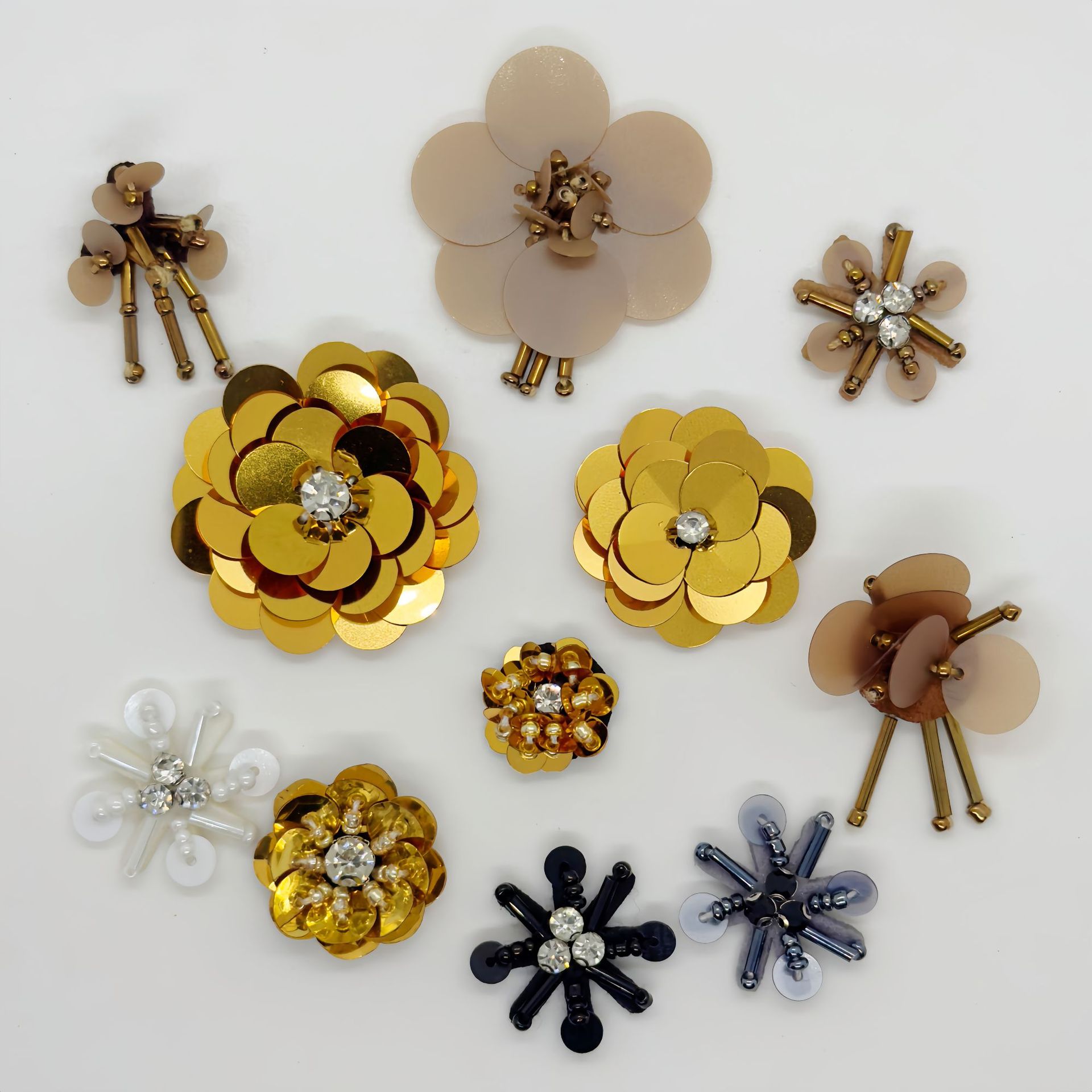 手工钉珠亮片花朵布贴立体珠片花朵补丁贴鞋帽包包DIY服装辅料