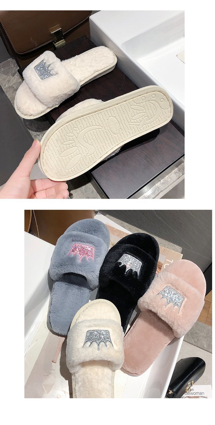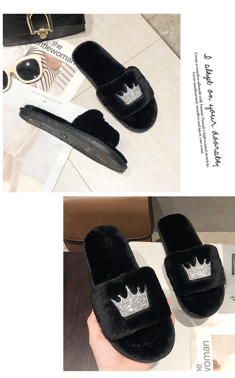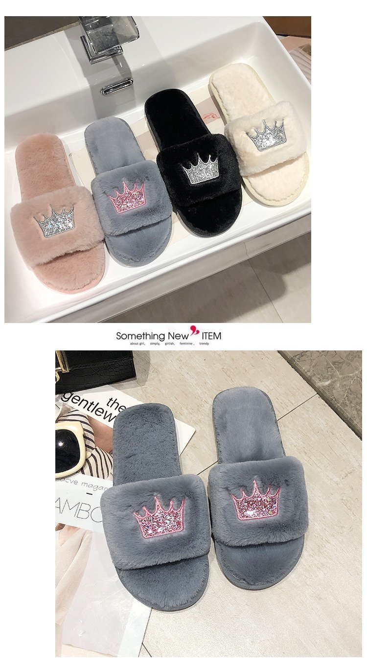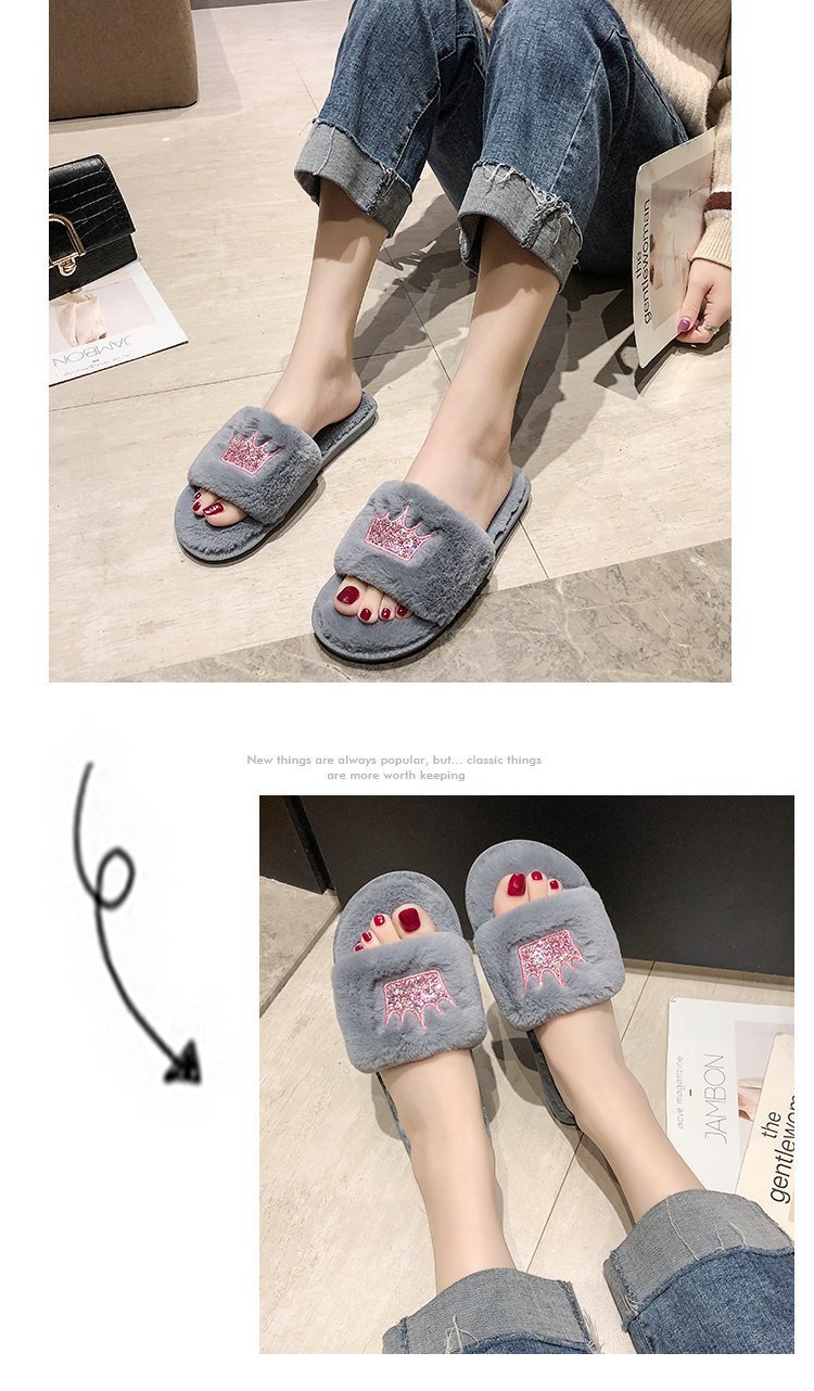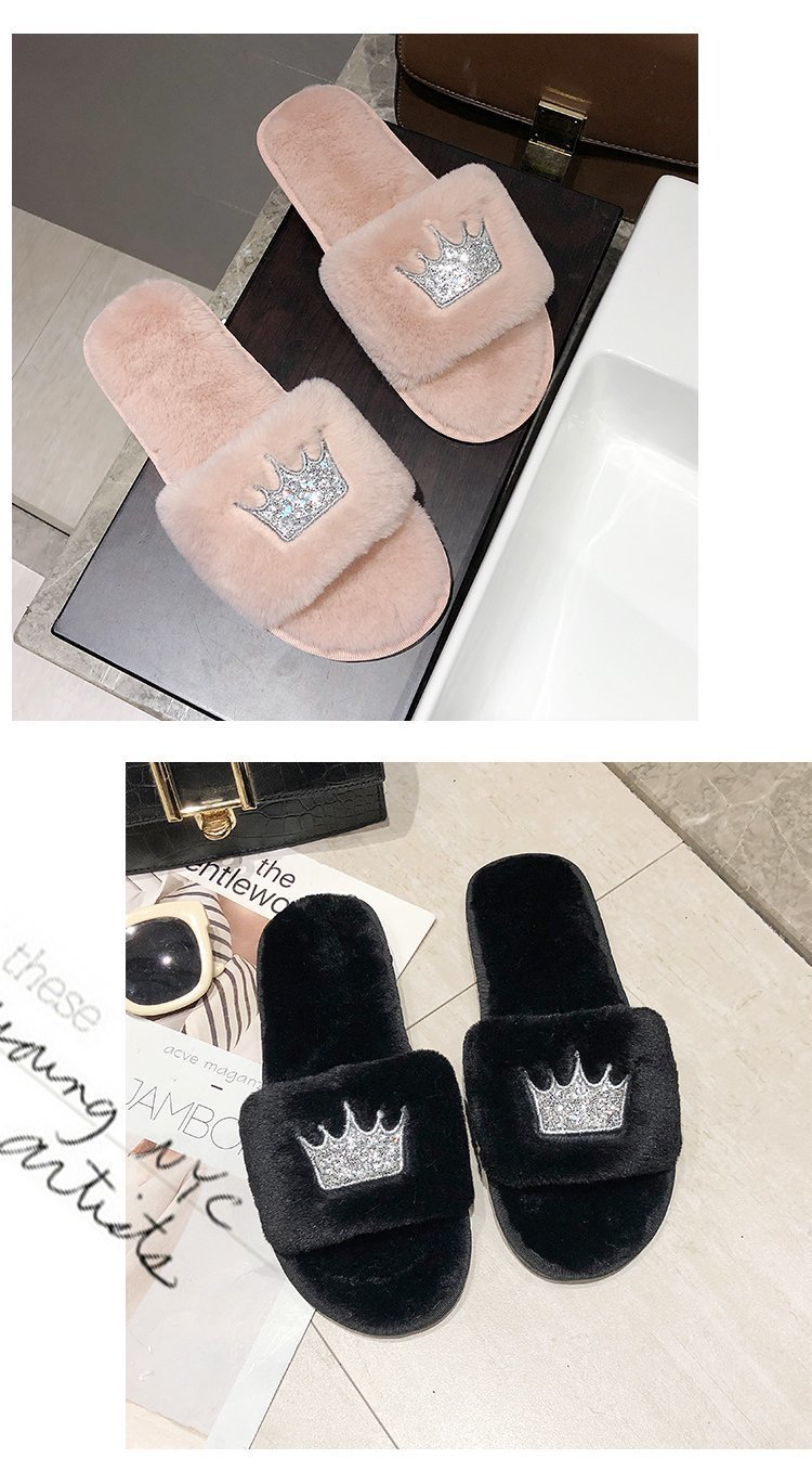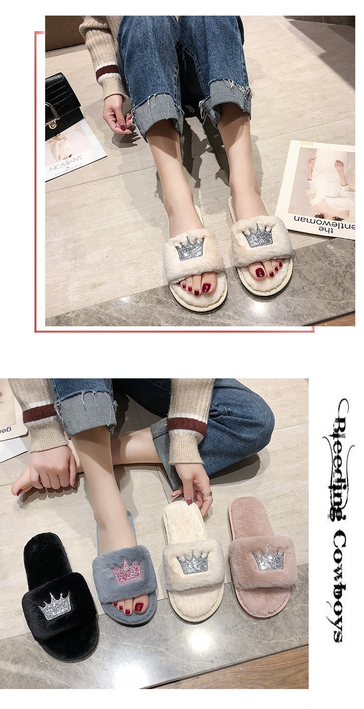 毛のスリッパの女性の秋冬の新型の室内外の1字は綿のスリッパの平の王冠の保温のレジャーの女性の靴の卸売りを引き延ばします。