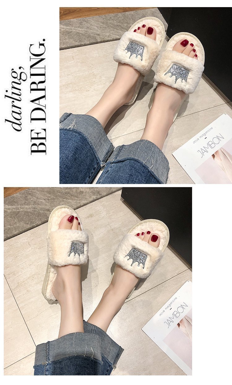 ネットで話題の厚底プラットフォームスリッパ、レディース、2025年冬新作、小香風ラムウール素材、ワンラインデザイン
