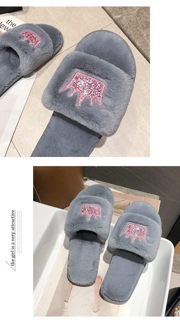 一字の毛のスリッパの女性の冬の対外貿易のアマゾンの大きいサイズの室内のぬいぐるみの平底の床板は足の指の保温の綿を引きずって引きずります。