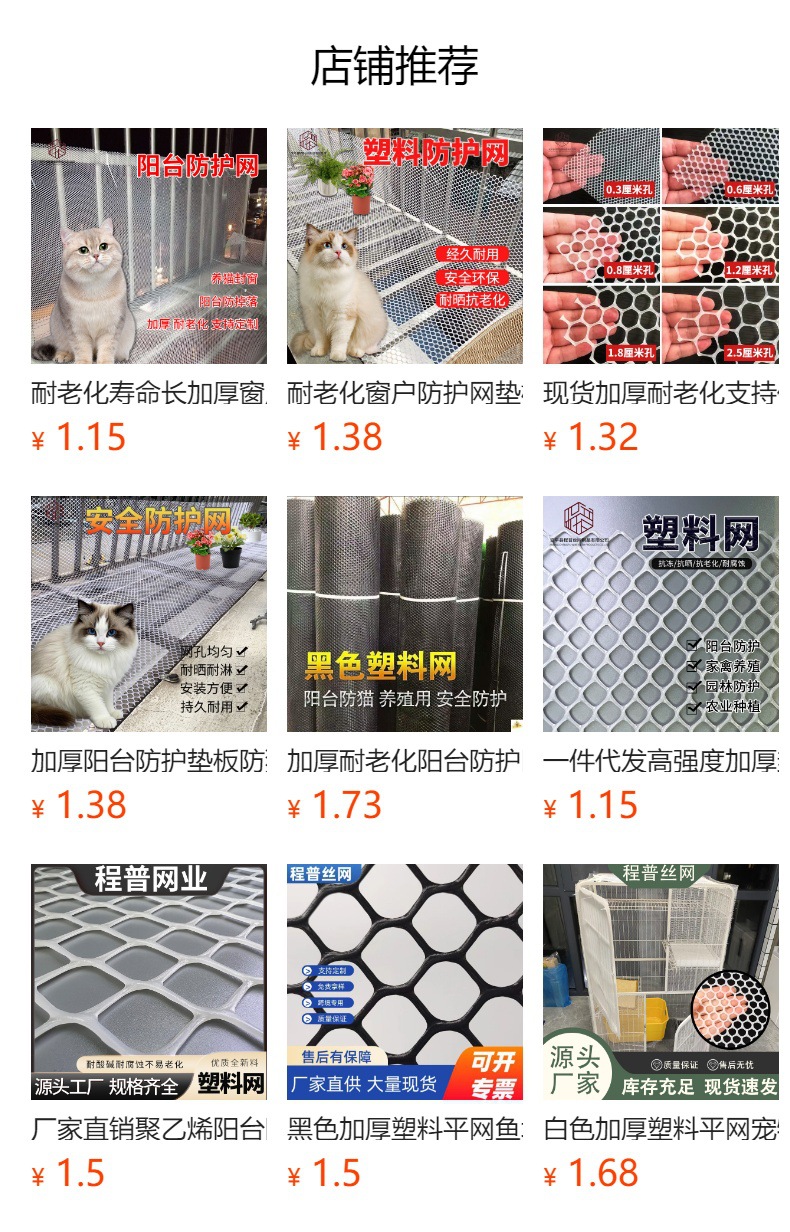 一件代发高强度加厚封窗防猫塑料网户外围栏围挡阳台防护网塑料网