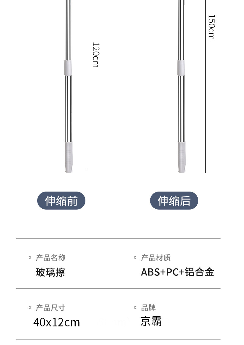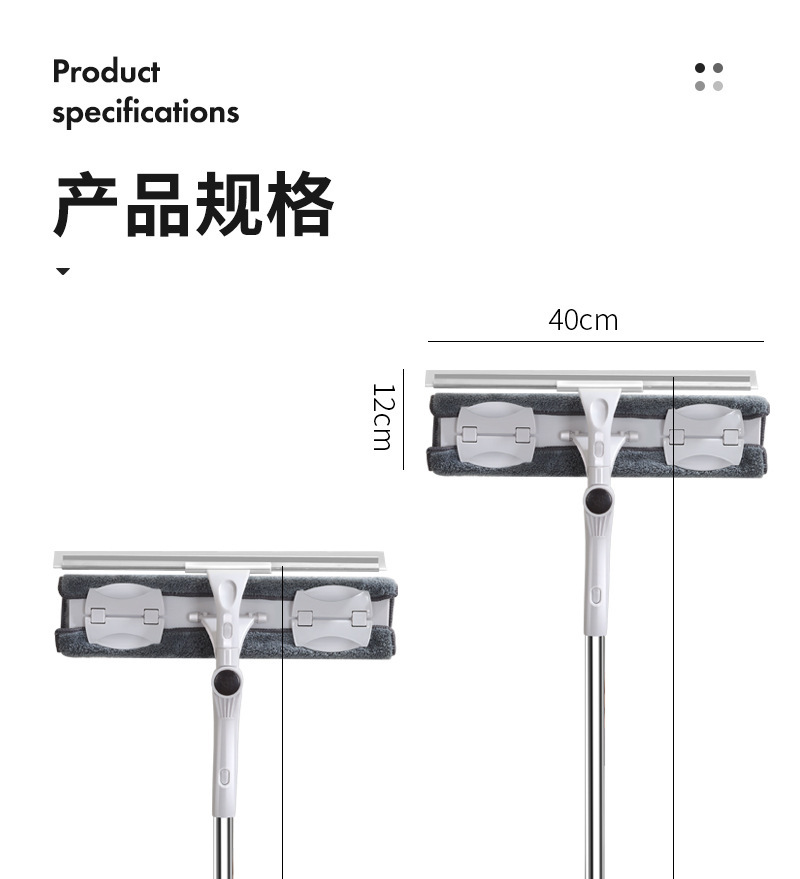 ガラス拭き加工品、家庭用伸縮ロッド、大型ヘッド、両面窓拭き、高層窓専用延長ロッドワイパー