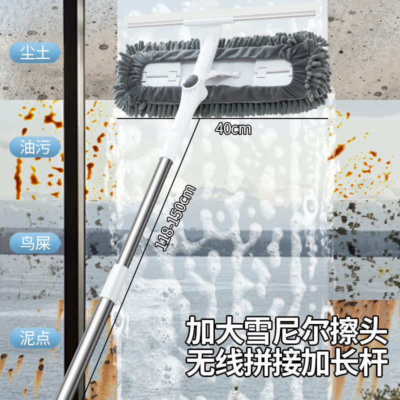 ガラスワイパー家庭用シェニールダスト除去延長ロッド両面ワイパー高層窓ワイパークリーニングツール